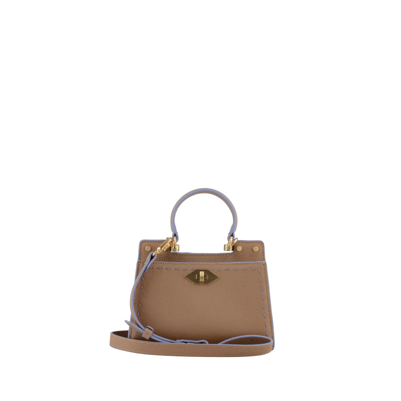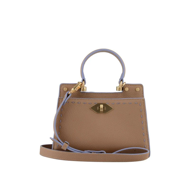 Fabriqué en cuir de vachette, le Trianon Bicolore présente une texture légèrement grainée qui lui confère une sensation de luxe. Les coutures en lilas, visibles sur les bords, soulignent le design bicolore et ajoutent une touche de modernité.