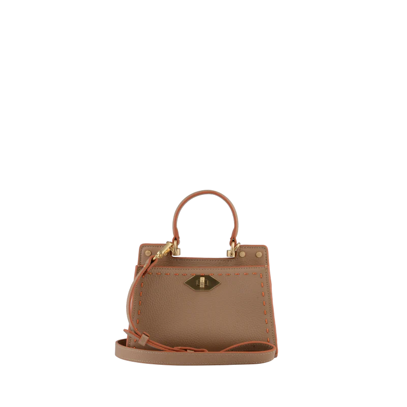 Fabriqué en cuir de vachette texturé, ce sac offre une sensation de qualité et de durabilité. Sa silhouette structurée et légèrement trapézoïdale, avec des bords arrondis, lui confère une allure élégante. Le sac est équipé d’une petite poignée supérieure pour un port à la main et d’une bandoulière amovible pour un port épaule ou croisé, offrant ainsi une grande polyvalence.
