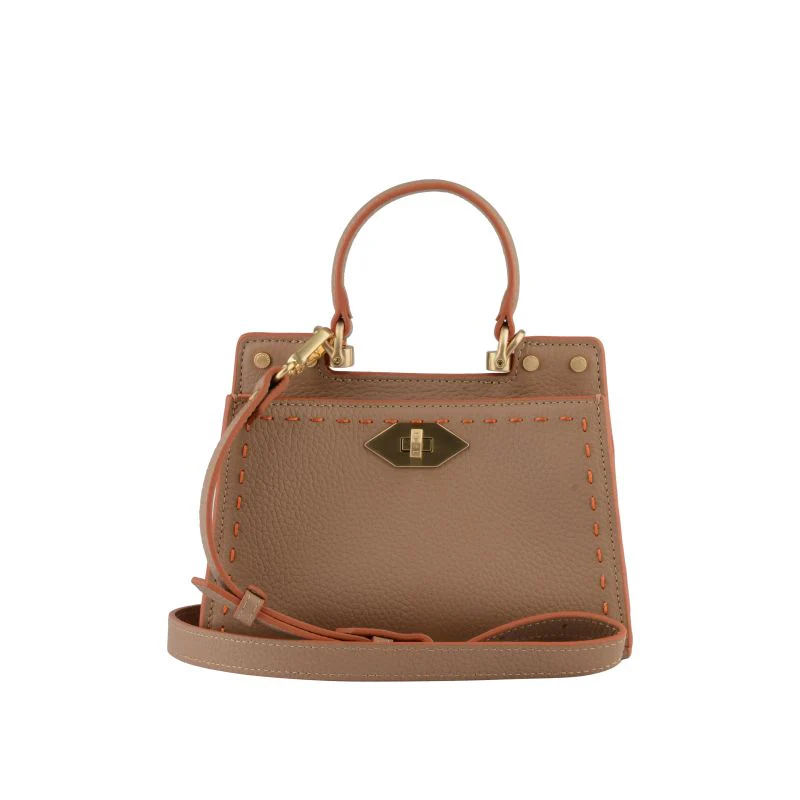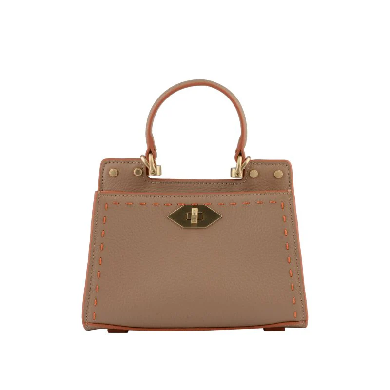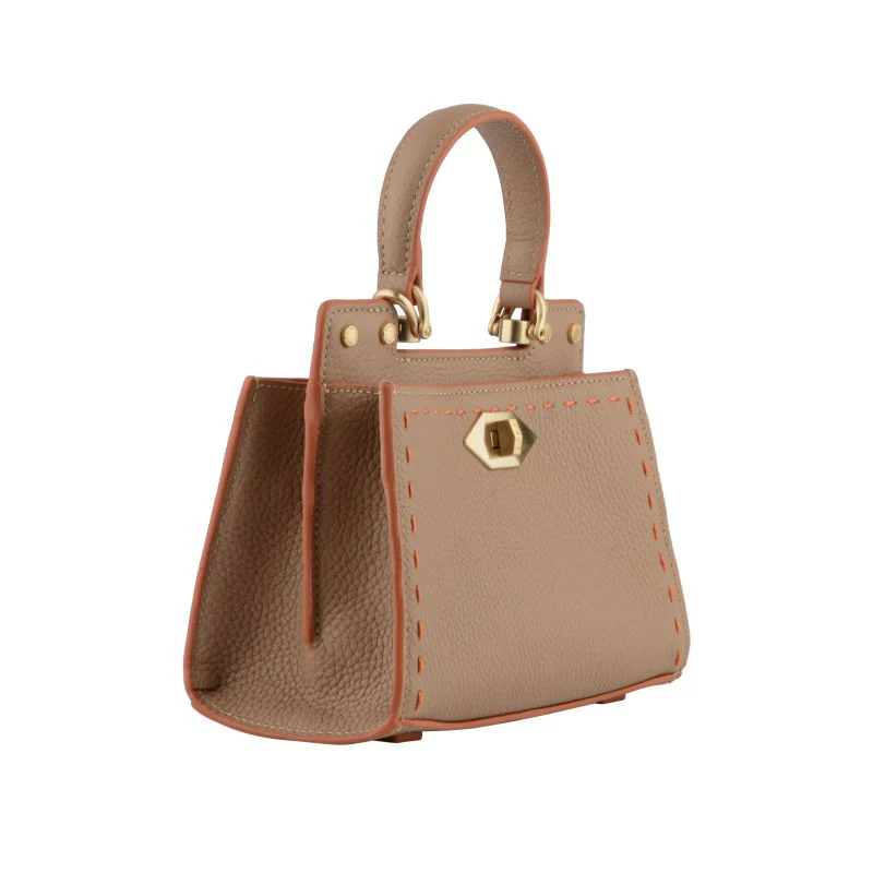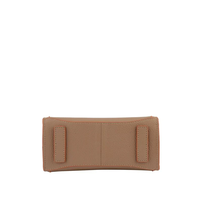 Le sac à main Trianon Bicolore de la maison Pourchet est un véritable intemporel qui allie chic et raffinement. Sa teinte micro mastic, un beige clair, est subtilement rehaussée de détails en orange vif, notamment des surpiqûres qui apportent une touche de modernité.