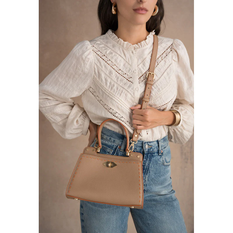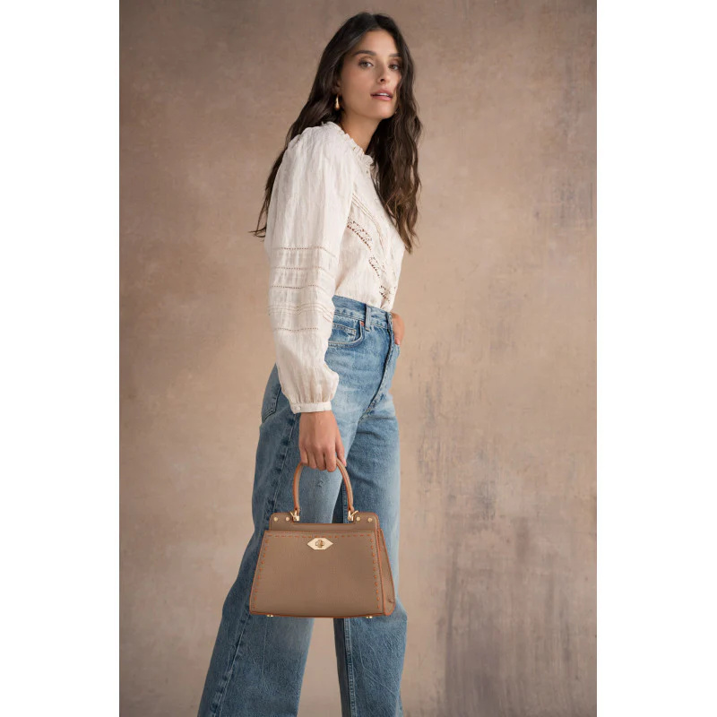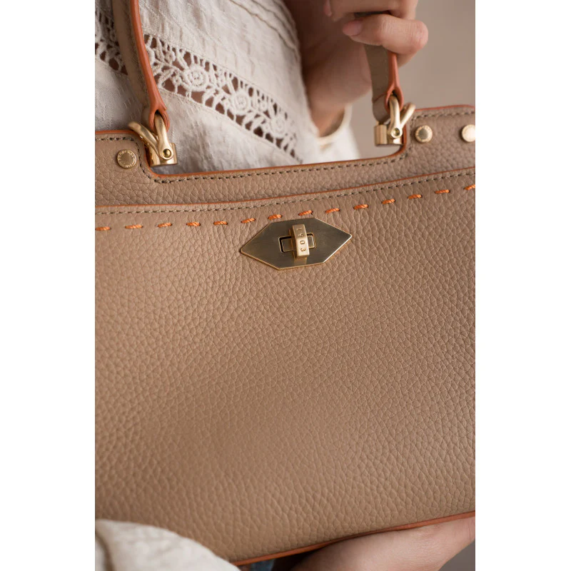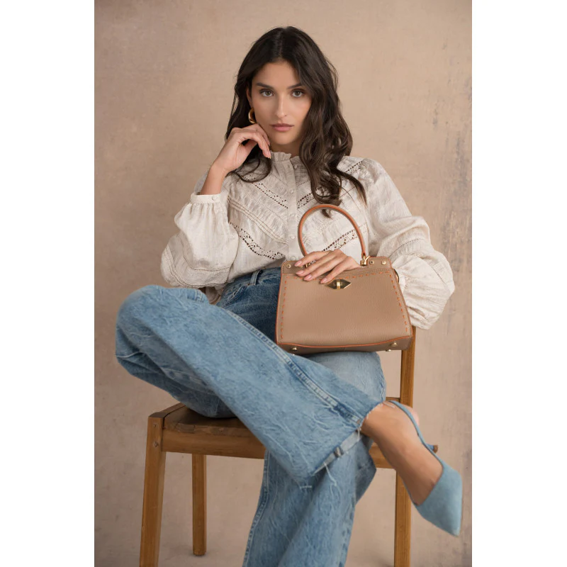 Le sac Trianon Bicolore se distingue par son élégance intemporelle et son raffinement, faisant de lui un incontournable de la maison Pourchet. Ce modèle, dans les teintes mastic et orange, est conçu pour répondre aux besoins des femmes modernes, alliant praticité et style.