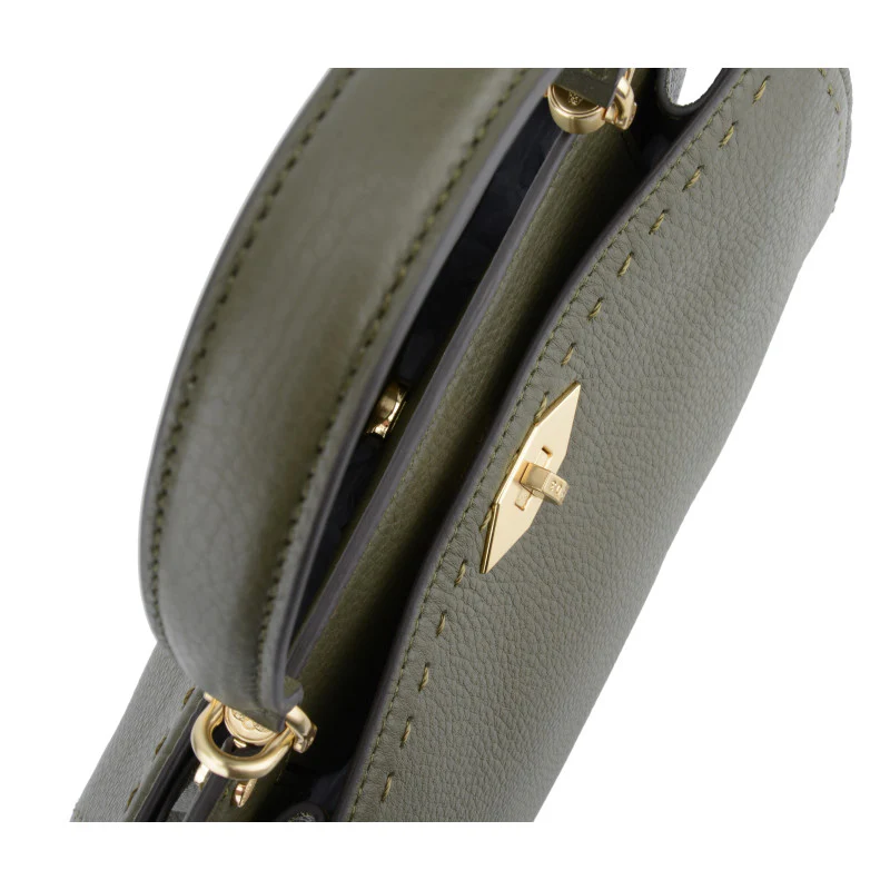 Ce sac à main de la marque Pourchet, modèle Trianon, se distingue par sa couleur kaki, une teinte élégante qui évoque la nature tout en restant moderne et intemporelle.