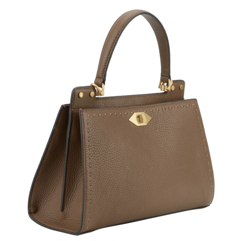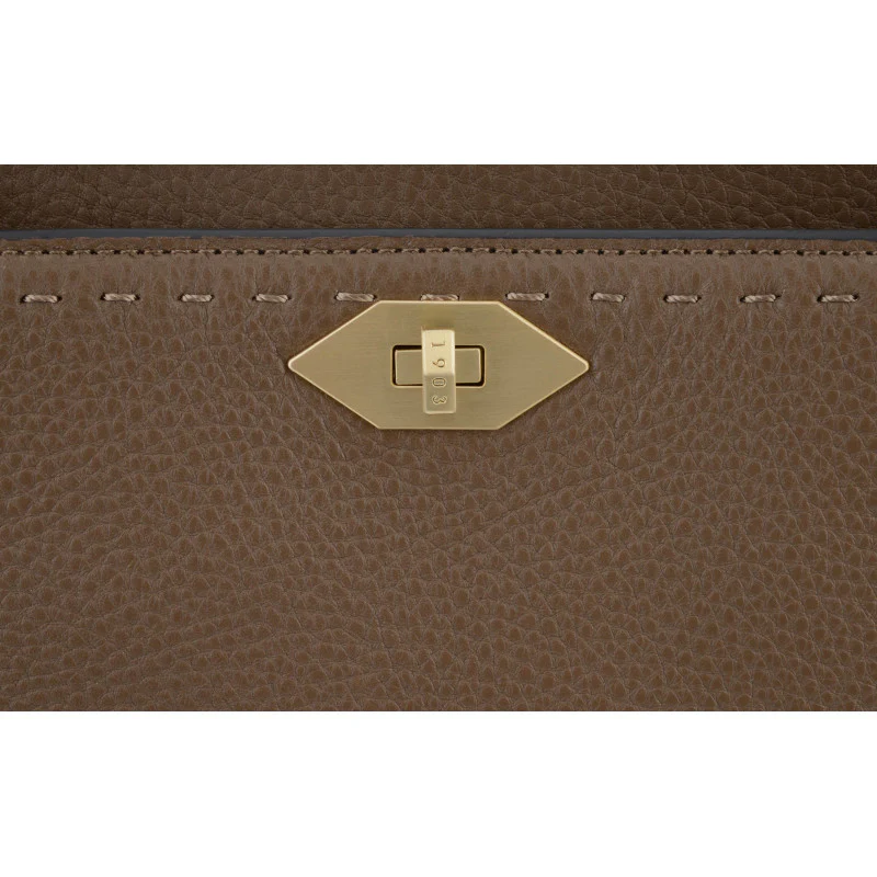 Le sac Trianon MM Taupe dispose de dimensions pratiques de 29 x 21 x 10.5 cm, parfait pour un usage quotidien. Il est équipé d’une poignée supérieure pour un port à la main et d’une bandoulière amovible et réglable, permettant un port épaule ou croisé selon vos préférences.