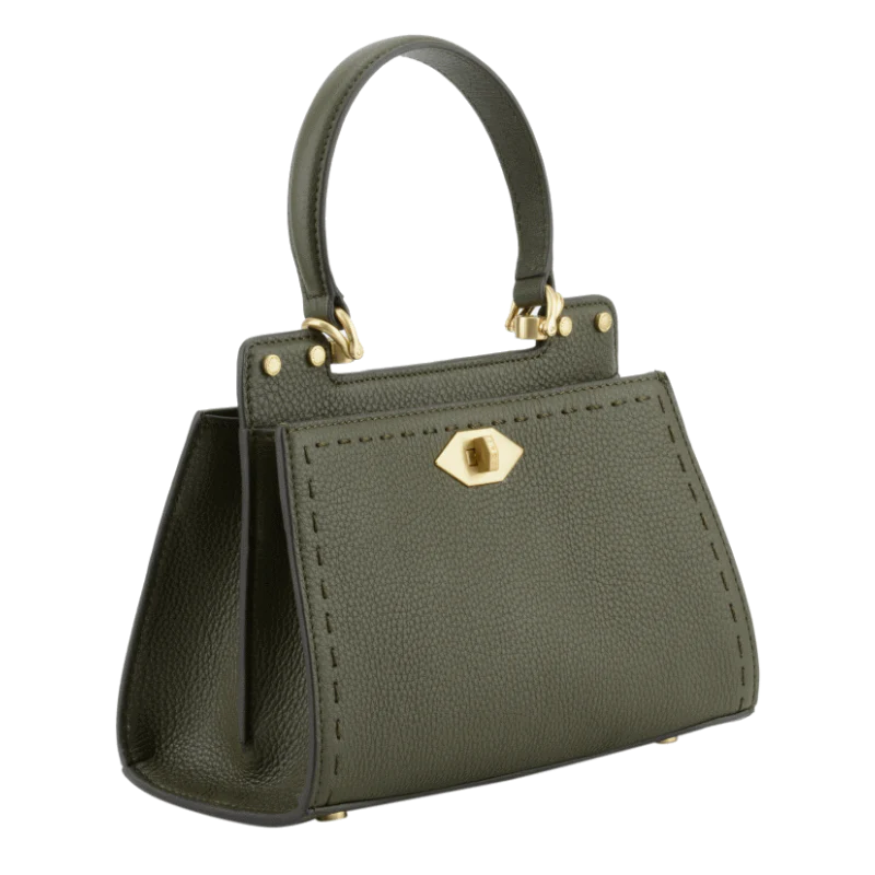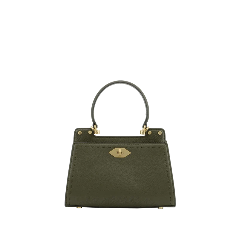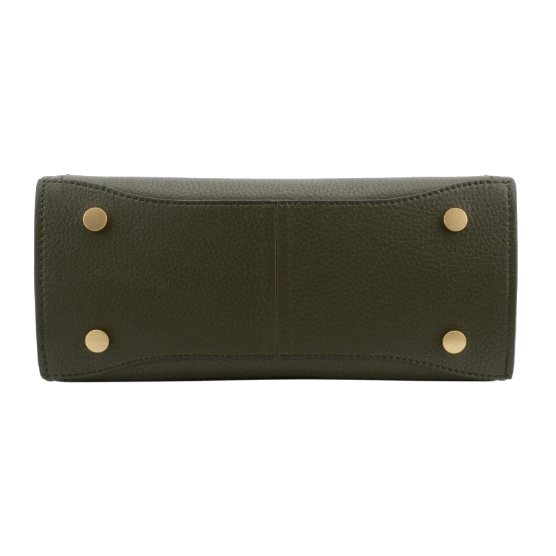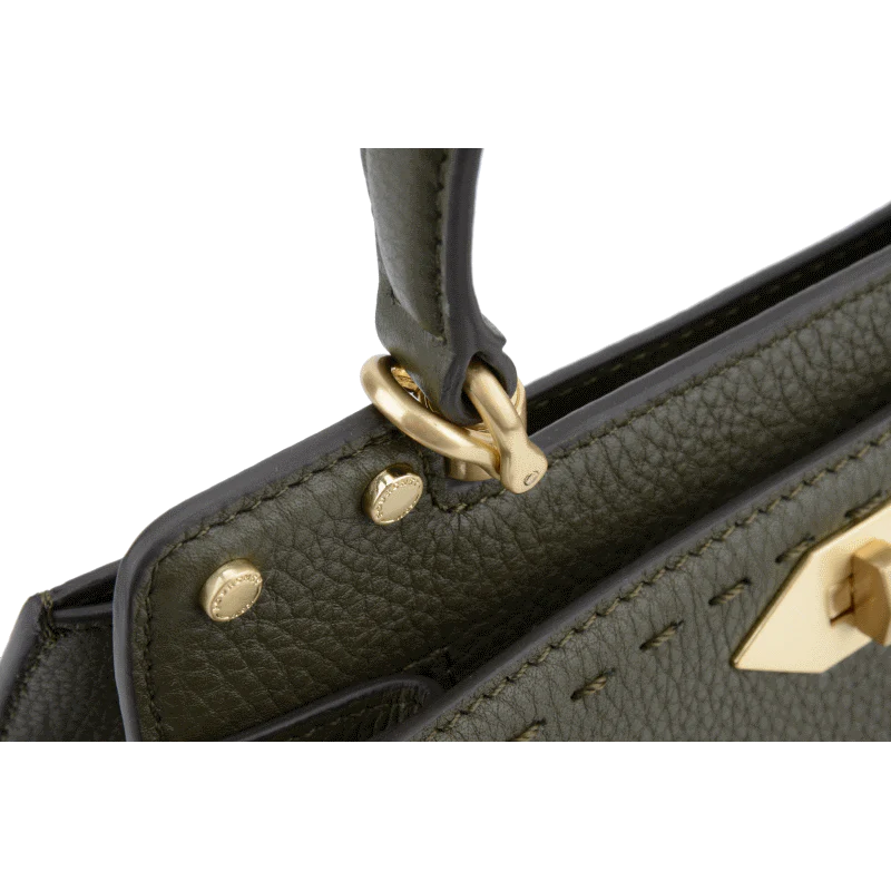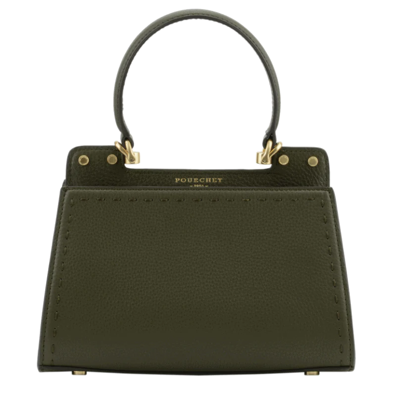 Le Trianon | PM kaki est un sac à main de la marque Pourchet, alliant élégance et fonctionnalité. Présenté dans une teinte kaki, ce sac se distingue par son cuir texturé de haute qualité, offrant une sensation agréable au toucher.