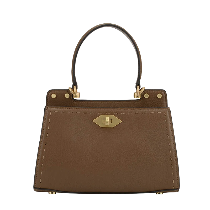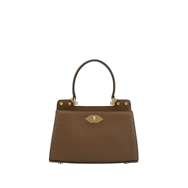Fabriqué en cuir de vachette texturé, ce sac se distingue par sa silhouette structurée et rectangulaire, avec des bords légèrement arrondis qui lui confèrent un aspect moderne et sophistiqué. Les finitions dorées, notamment le fermoir en métal, ajoutent une touche de brillance, tandis que les coutures visibles sur les bords témoignent d’un savoir-faire artisanal.