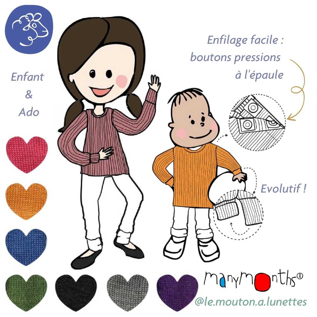 Tricot manches longues en laine mérinos enfant – ManyMonths Coloris 2023/24