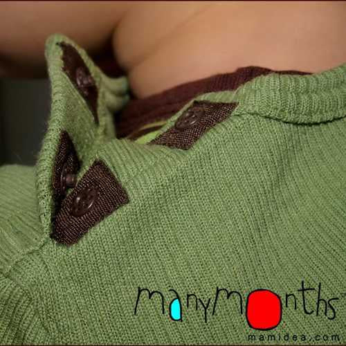 Ce t-shirt manches longues Manymonths en pure laine mérinos est le grand classique basique disponible en de nombreuses tailles et toutes les couleurs (et aussi pour adulte et ado ici). Détail pratique : il s’ouvre sur une épaule avec des boutons pressions discrets, pour un enfilage très facile.