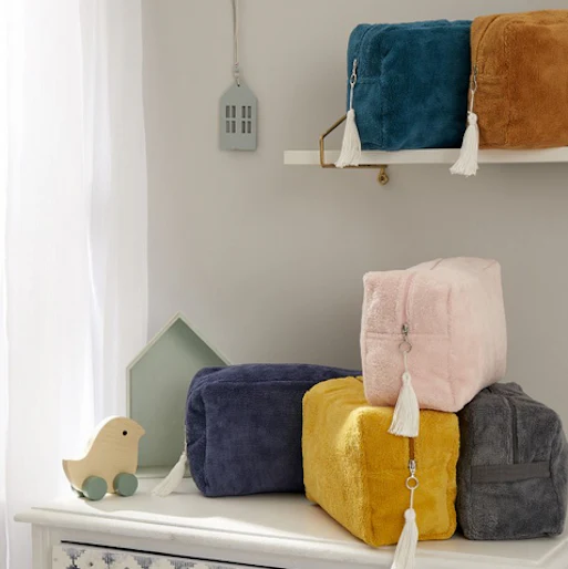 Avec son toucher ultra doux et sa doublure imperméable, cette trousse saura se montrer indispensable pour transporter les produits de soin et de toilette de votre petit bout.