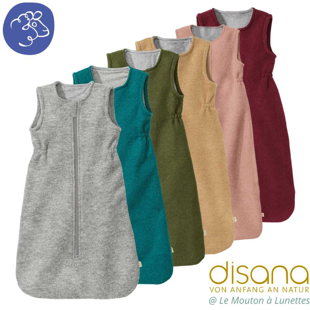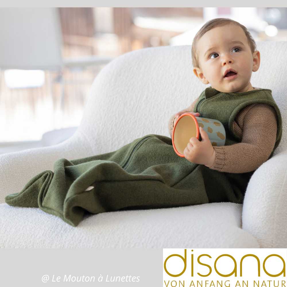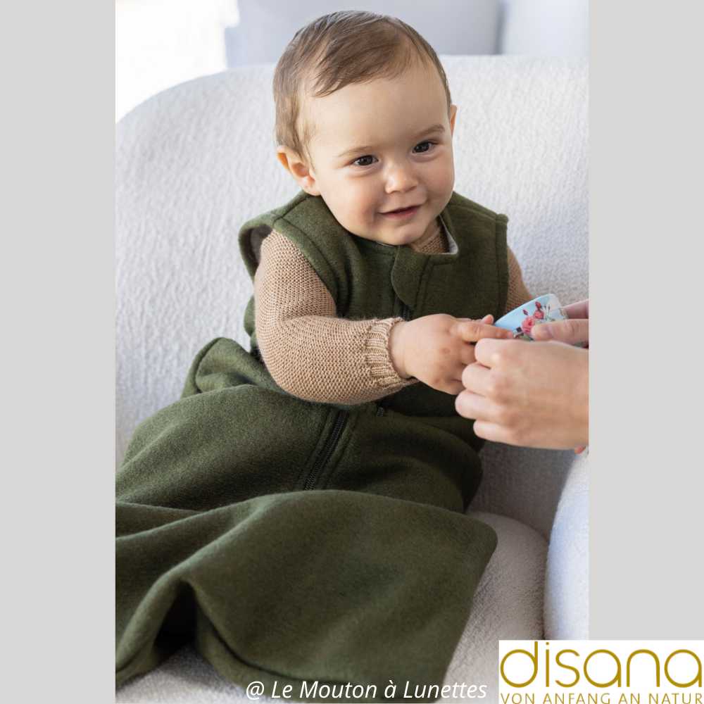 Disana propose aussi des gigoteuses un peu moins chaudes en tricot de laine mérinos, adaptées pour toute l’année.