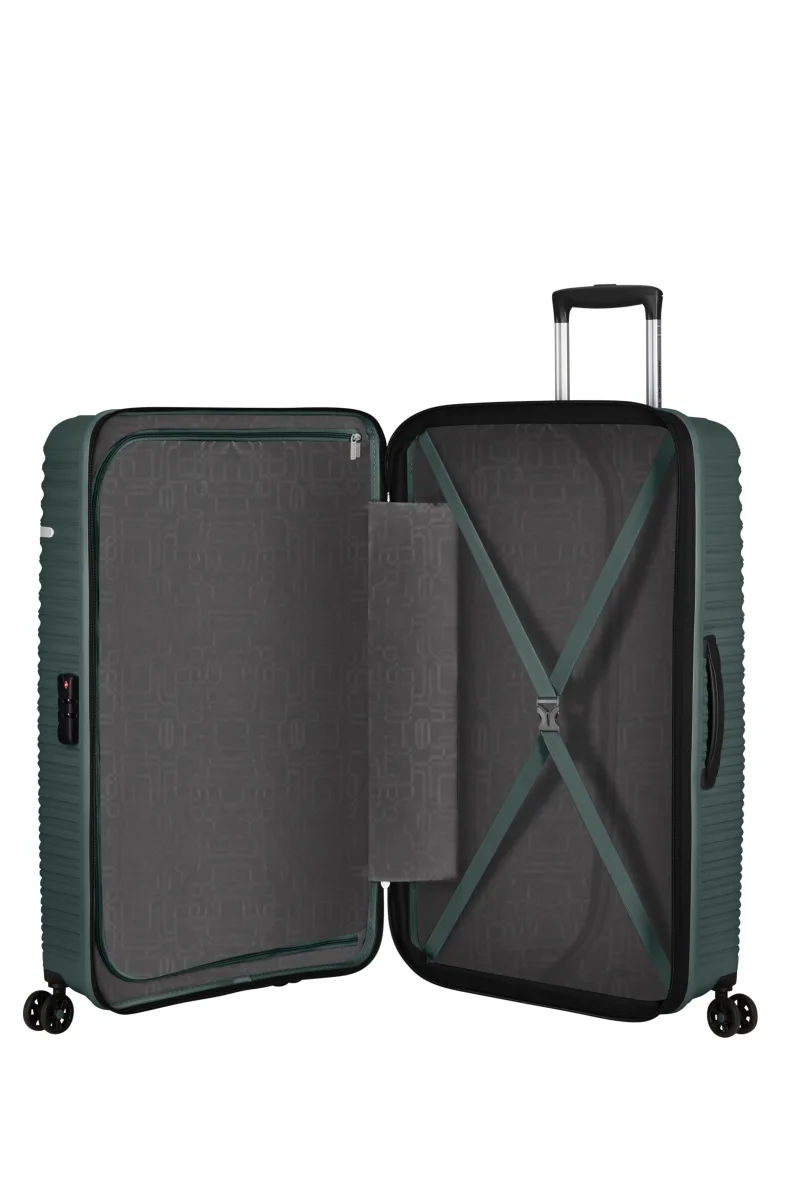 La valise American Tourister Liftoff 67 cm est parfaitement adaptée aux séjours de moyenne durée. Sa conception en polypropylène garantit une excellente robustesse tout en conservant une grande facilité de manipulation. Les quatre roulettes doubles multidirectionnelles offrent un confort de roulage optimal, même lorsque la valise est bien remplie.