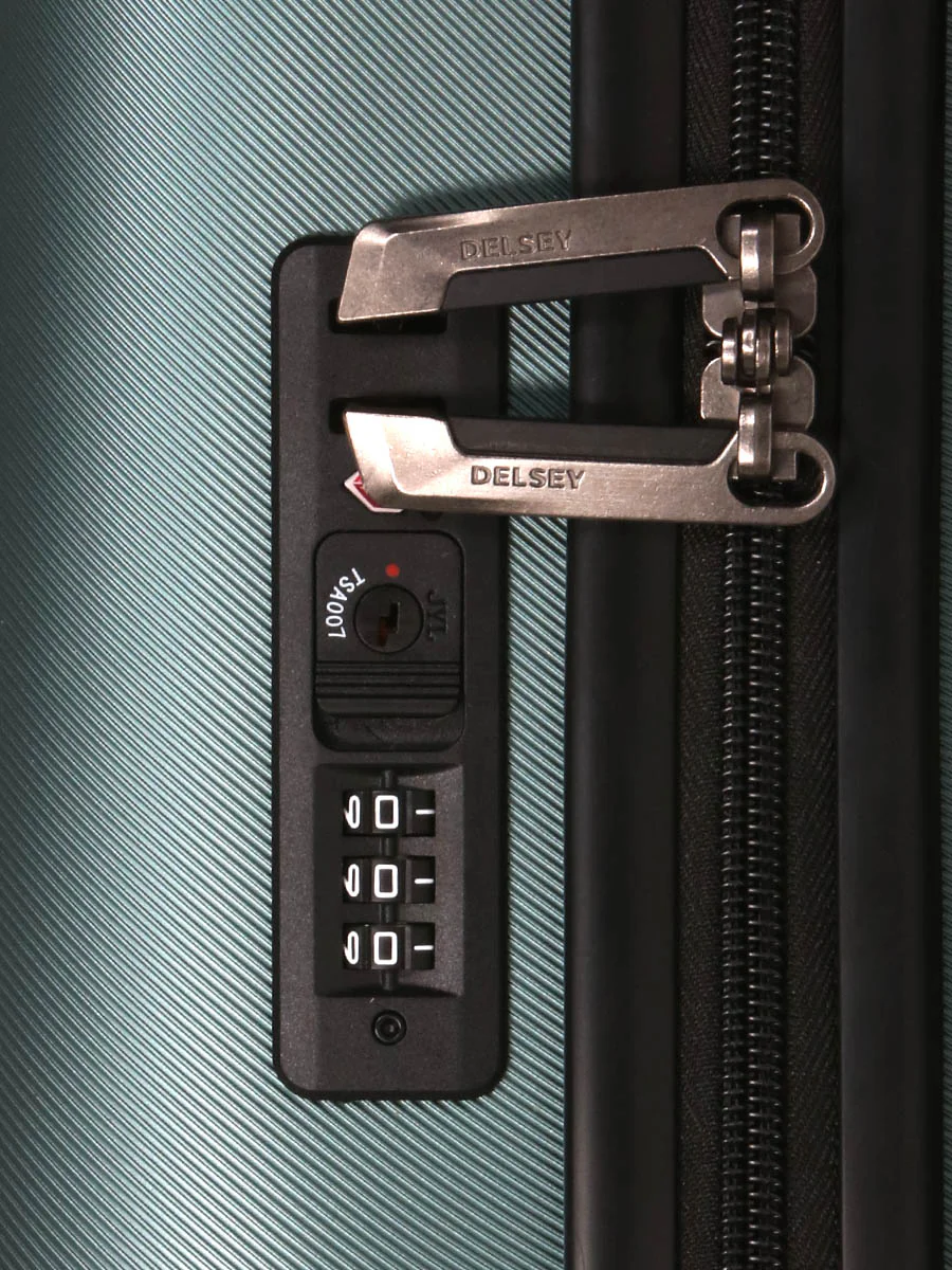 Pensée pour les courts séjours, la valise Delsey Air Armour Slim 55 cm associe légèreté (2,98 kg), robustesse et praticité. Sa coque en ABS et polycarbonate est à la fois résistante et élégante, avec une garantie Delsey de 3 ans. Maniable grâce à ses 4 doubles roulettes pivotantes et son trolley double canne, elle se transporte facilement à la main ou en roulage fluide. Son intérieur bien pensé permet d’emporter le nécessaire pour 2 à 3 jours, tout en maintenant les vêtements bien en place. Compacte, elle est acceptée en cabine, même par les compagnies les plus strictes. Sa serrure TSA intégrée assure une sécurité optimale en voyage.