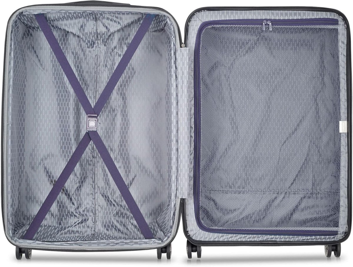 Avec la valise Delsey Air Armour 77 cm, partez l’esprit libre pour plusieurs semaines. Son design astucieux combine légèreté, robustesse (ABS + polycarbonate) et confort de roulage grâce à ses 4 doubles roues pivotantes et son trolley double canne. Son volume extensible de 102 jusqu’à 112 litres permet d’emporter vêtements, chaussures et accessoires en toute facilité. L’intérieur entièrement doublé comprend deux grands compartiments avec sangles papillon et plateau de séparation zippé, pour une organisation optimale. Une serrure TSA encastrée sécurise vos effets, et les poignées souples facilitent les manipulations. Le tout, avec une garantie Delsey de 3 ans.