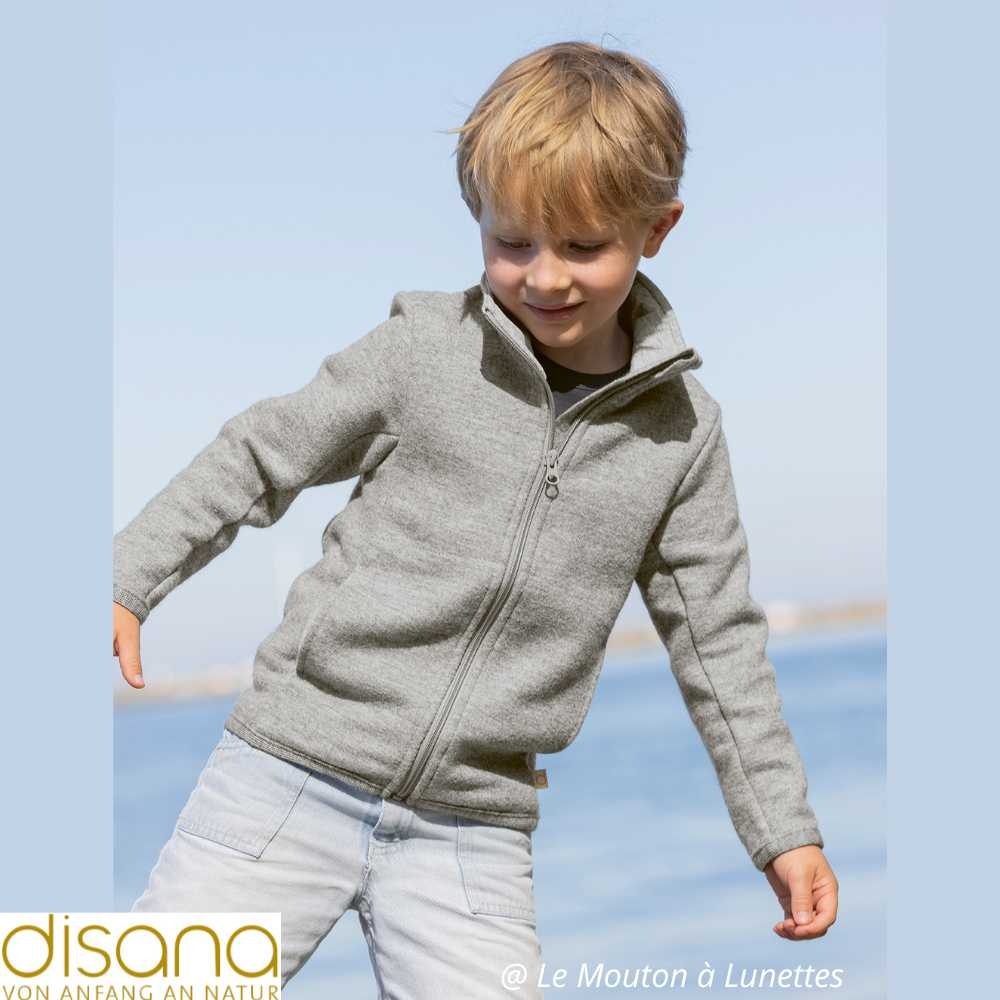 Cette gilet en laine pour enfant est une nouveauté de la marque DISANA spécialiste de la laine mérinos bio. Ce nouveau tissu de laine bouillie 100% naturelle est ici proposé dans un grammage plus léger de 260 g/m² qui rend cette veste / gilet à la fois légère et robuste.