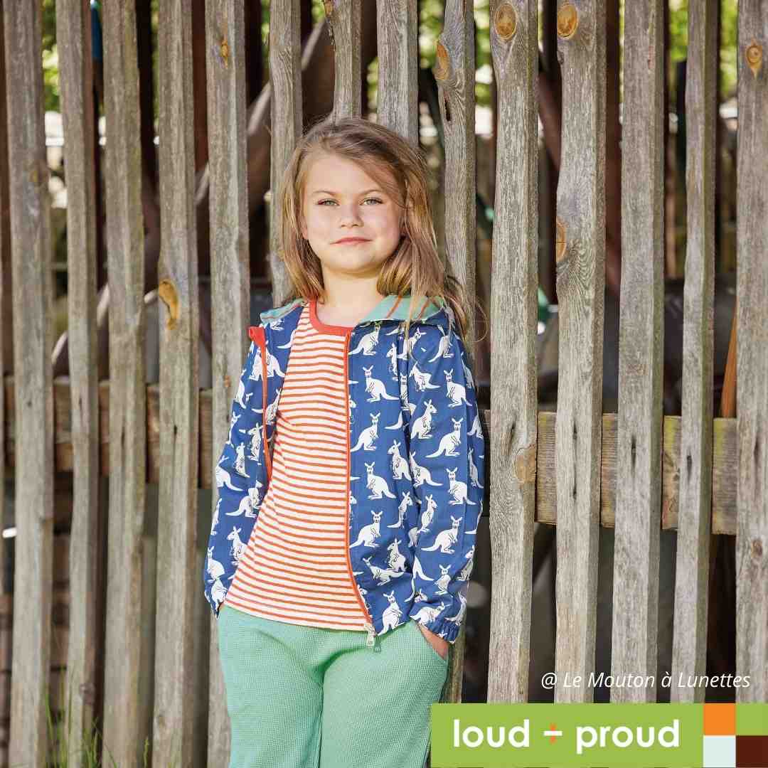 Enfin un coupe-vent déperlant Zéro plastique ! Une veste légère déperlante en coton bio pour enfant certifié GOTS, qui protège du vent et d’une pluie légère grâce à son imprégnation écologique Bionic finish. Un vêtement mixte et original de la marque allemande Loud and Proud, avec des motifs animaliers joyeux. – Capuche doublée en fin […]