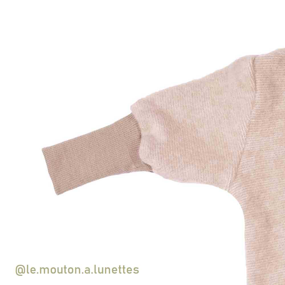 Veste évolutive grâce aux longs bords côtes aux mains, à enrouler ou dérouler pour ajuster la taille.