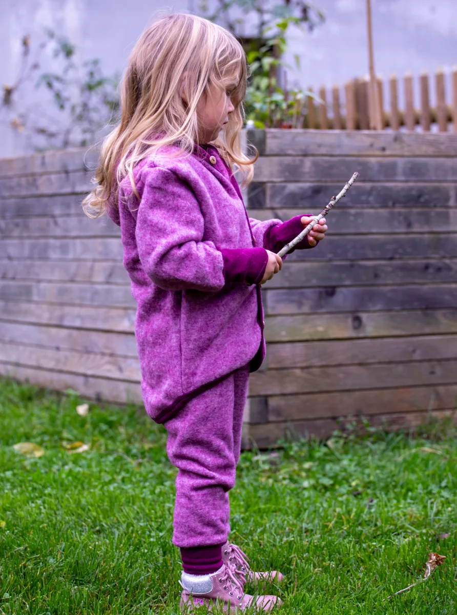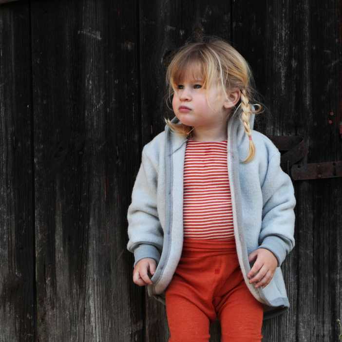 Un vêtement enfant de qualité, en douce polaire de coton bio (40%) et pure laine mérinos naturelle (60%) certifié par le label bio très strict GOTS.
