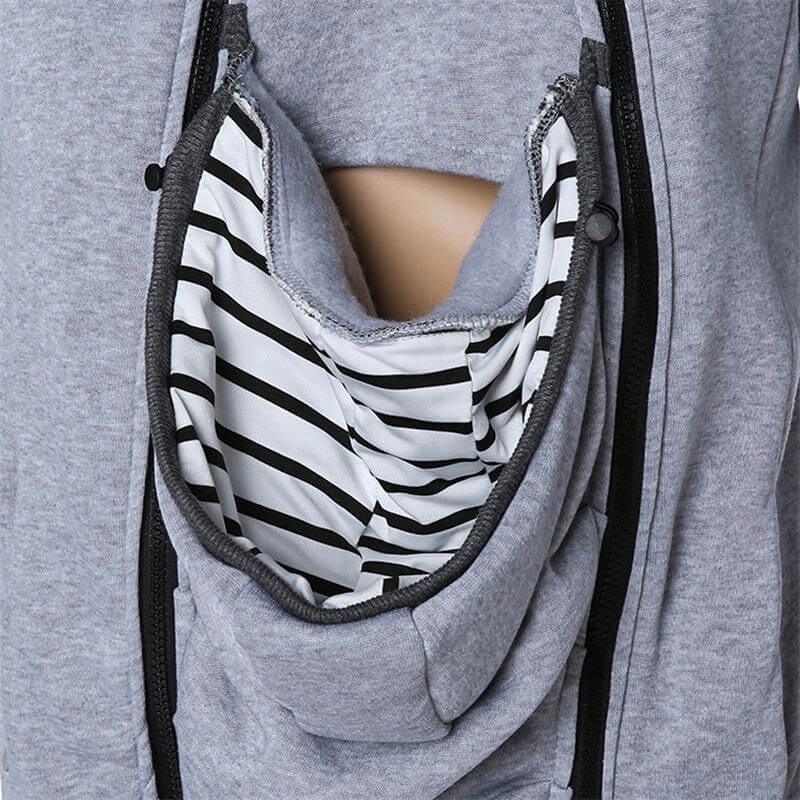 NOTE : Ce vêtement ne peut pas remplacer un porte bébé. Il s’agit d’une veste multi-usage et non d’un porte bébé. De plus, il est important de toujours vérifier la sécurité de son bébé avant de fermer sa veste.