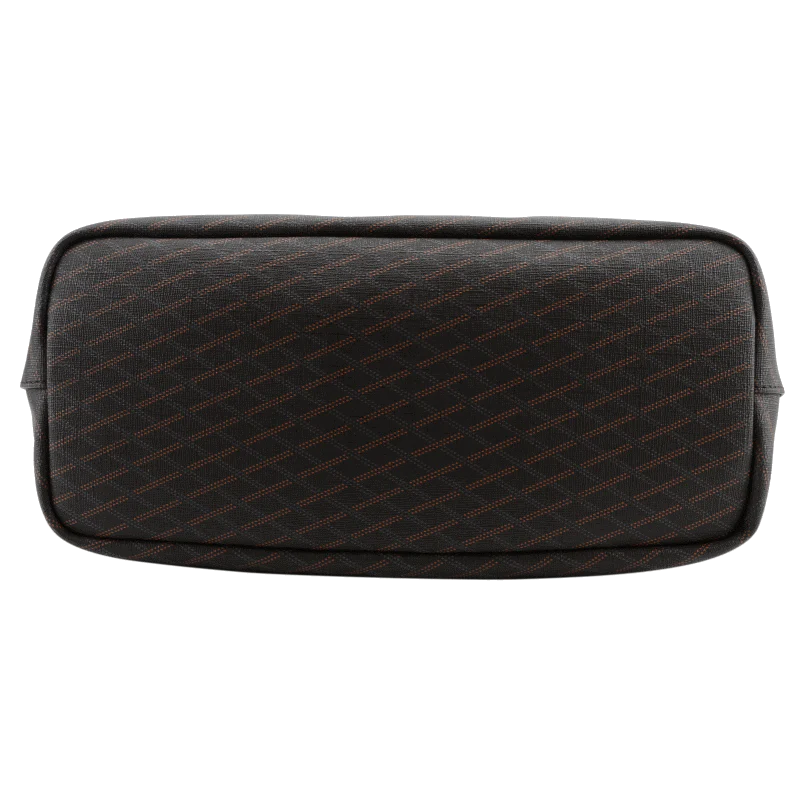 Conçu en toile enduite garnie cuir de vachette, il se distingue par sa légèreté et sa résistance. La couleur marron, avec un motif en relief, apporte une touche de sophistication, tandis que les anses en cuir ajoutent un aspect luxueux et confortable.