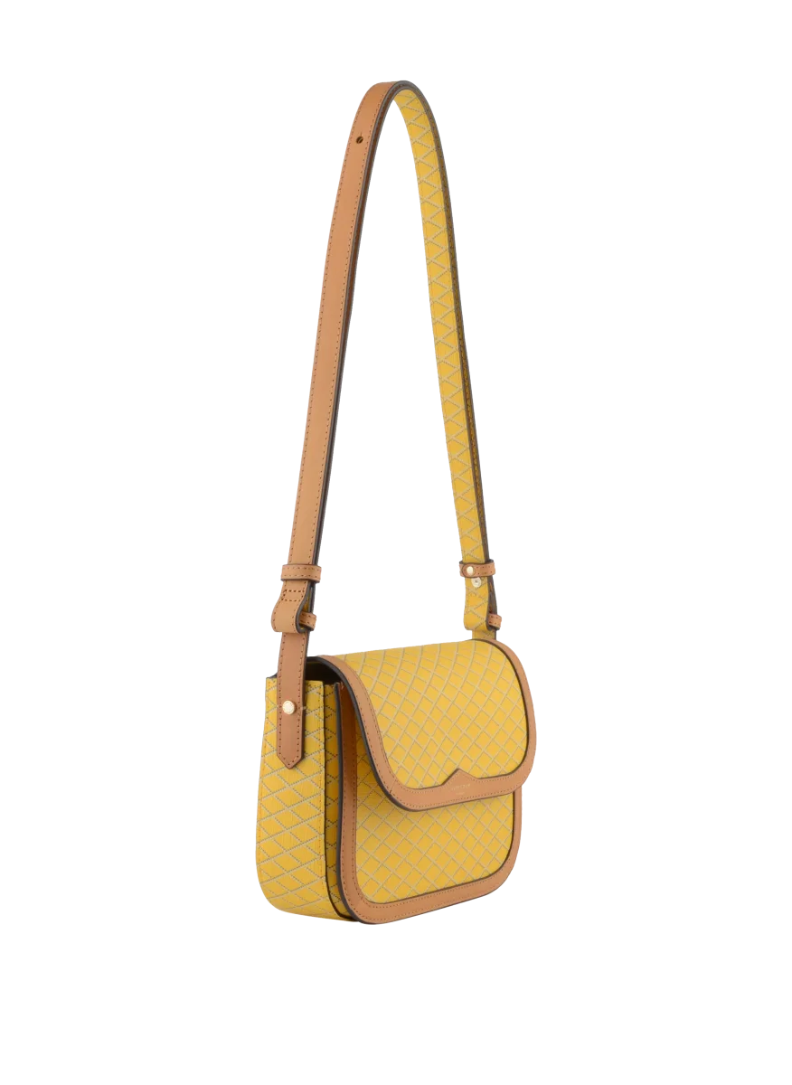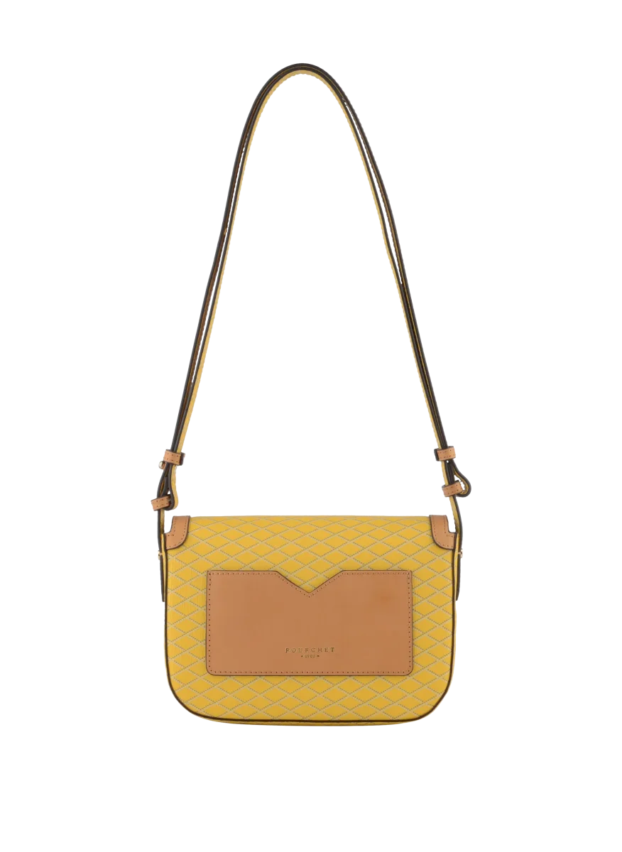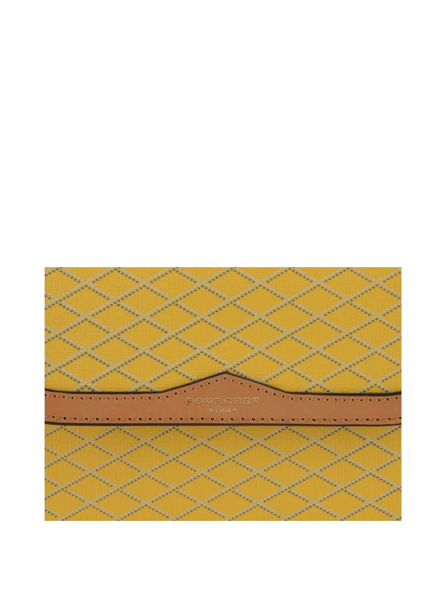 Le petit porté travers à rabat de la marque Pourchet est l’accessoire parfait pour allier style et fonctionnalité. Son design moderne est rehaussé par un motif en losanges de couleur plus claire, apportant une touche de texture et de sophistication.