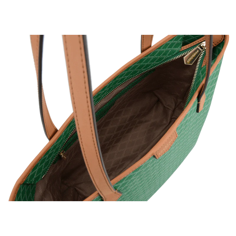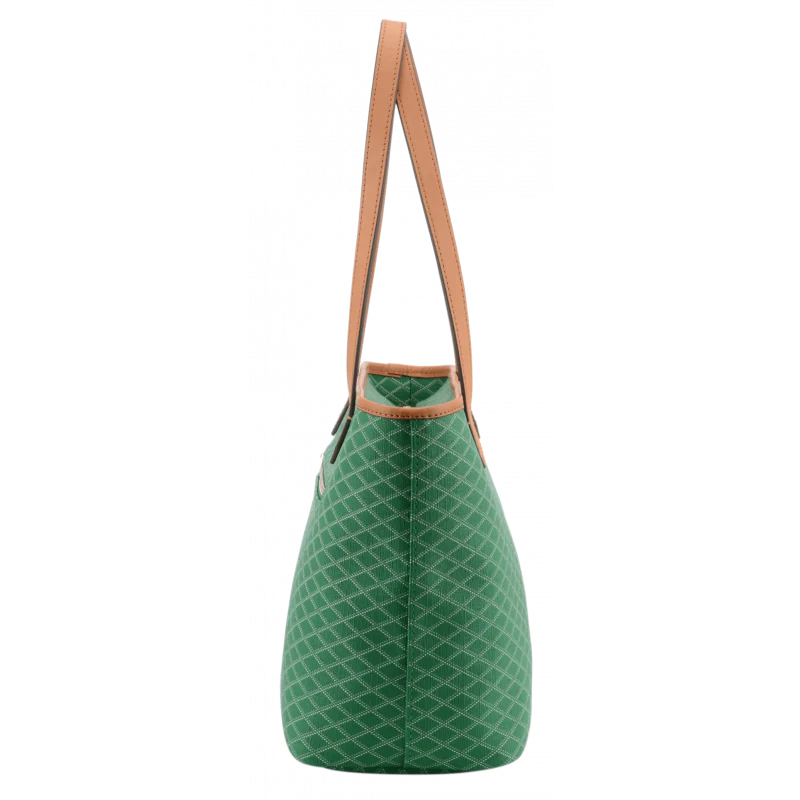 Le cabas Waves en émeraude est conçu pour allier simplicité et efficacité. Fabriqué à partir de toile enduite garnie de cuir de vachette, ce sac est à la fois durable et élégant, idéal pour une utilisation quotidienne.