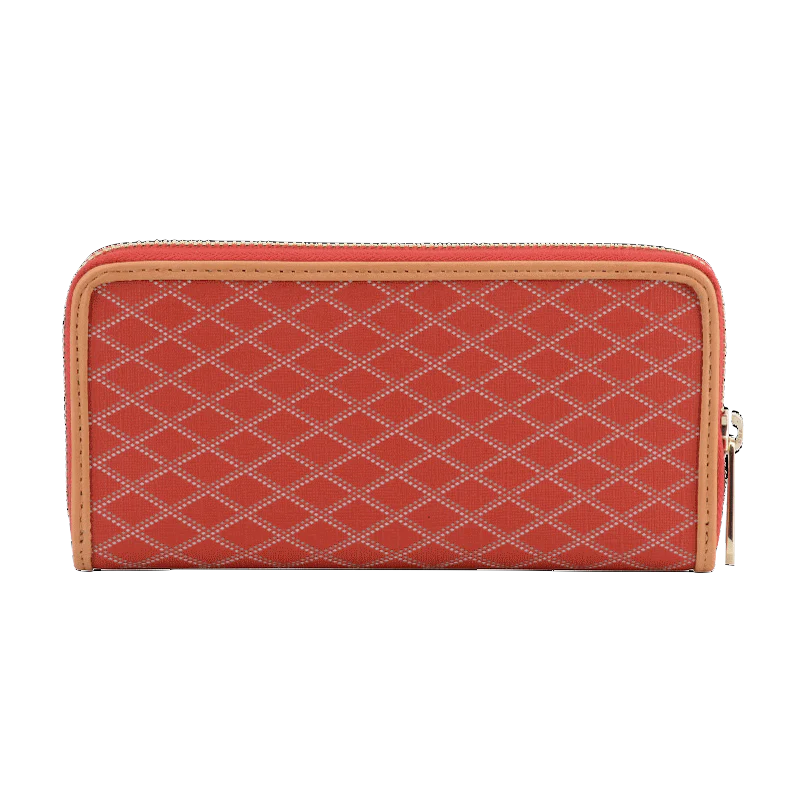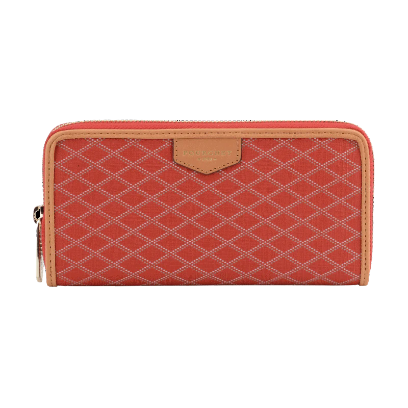 Le porte-monnaie rouge de la ligne Waves est l’accessoire idéal pour allier style et praticité. Conçu en toile enduite garnie de cuir de vachette, il se distingue par sa couleur rouge vif et son motif en losanges, apportant une touche moderne et élégante à votre collection de maroquinerie.