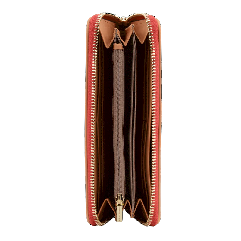 Avec des dimensions de 19 x 10 x 2.5 cm, ce porte-monnaie présente une forme rectangulaire allongée, parfaitement adaptée pour un rangement facile dans un sac à main. À l’intérieur, il offre une organisation optimale grâce à plusieurs compartiments, incluant un espace central zippé pour la monnaie et des fentes pour vos cartes. La doublure intérieure, de teinte plus sombre, facilite la visibilité de vos objets essentiels.