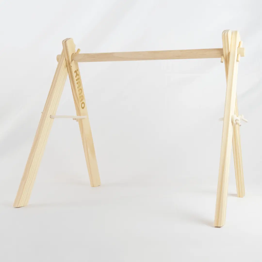 Our Basic Play Gym Frame offers exactly that possibility – a minimalist, beautifully crafted wooden A-frame that serves as the perfect canvas for your creativity. This standalone structure provides the essential architecture for suspended play, allowing you to choose, change, and rotate hanging toys based on your baby’s developing interests and needs. Start with just one special toy or create an entire collection that can be refreshed as your baby grows.
