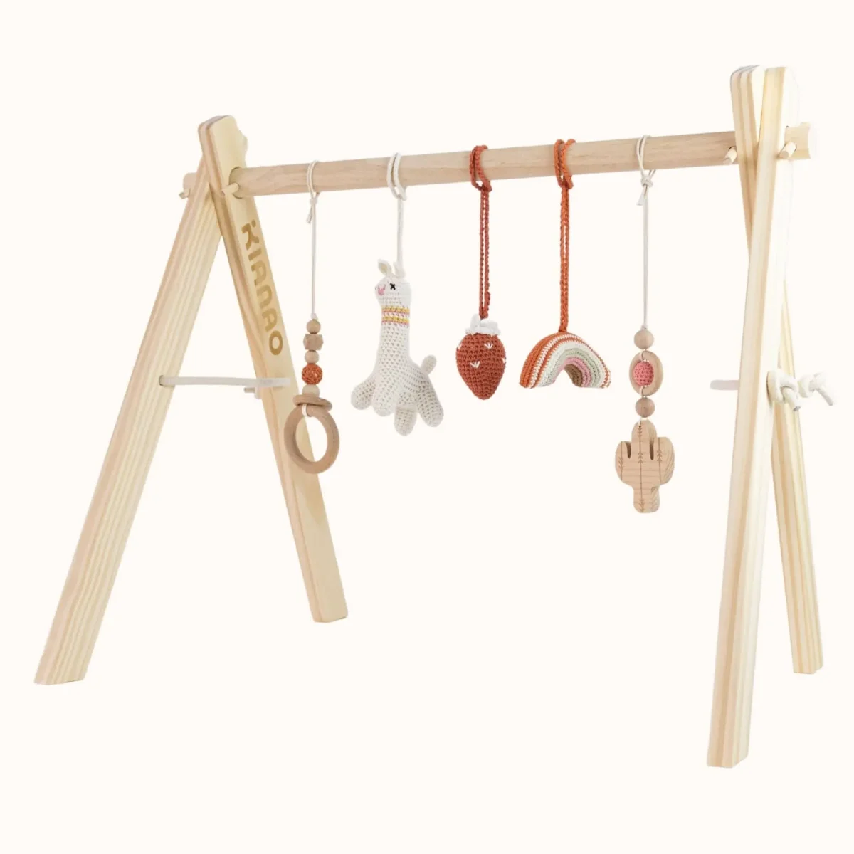 Wooden Baby Gym | Alpaca Play Gym Set with Rainbow & Desert Toys
