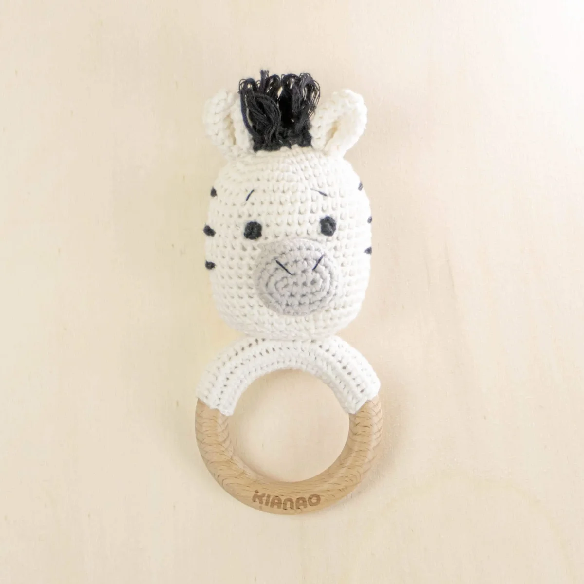 Zebra Rattle Tooth Ring | Crochet & Wooden Sensory Teether